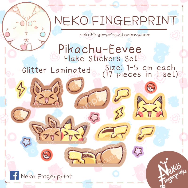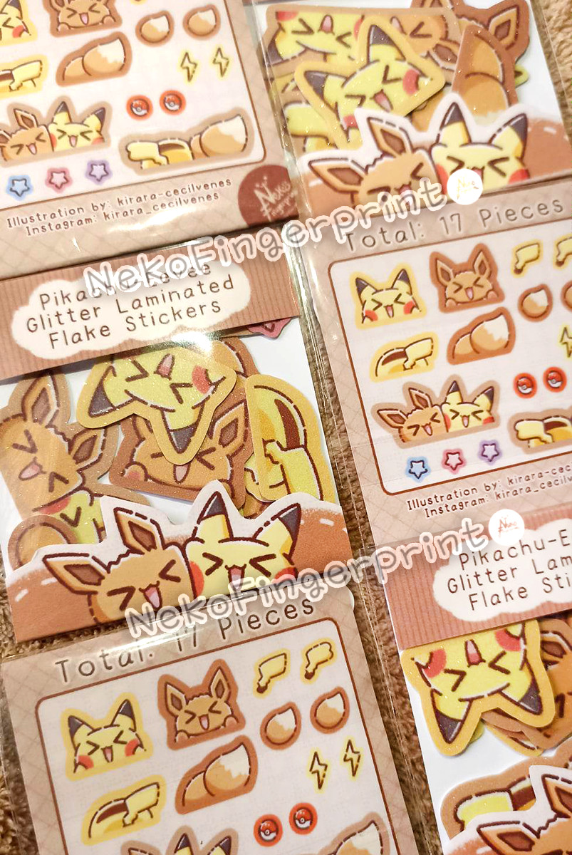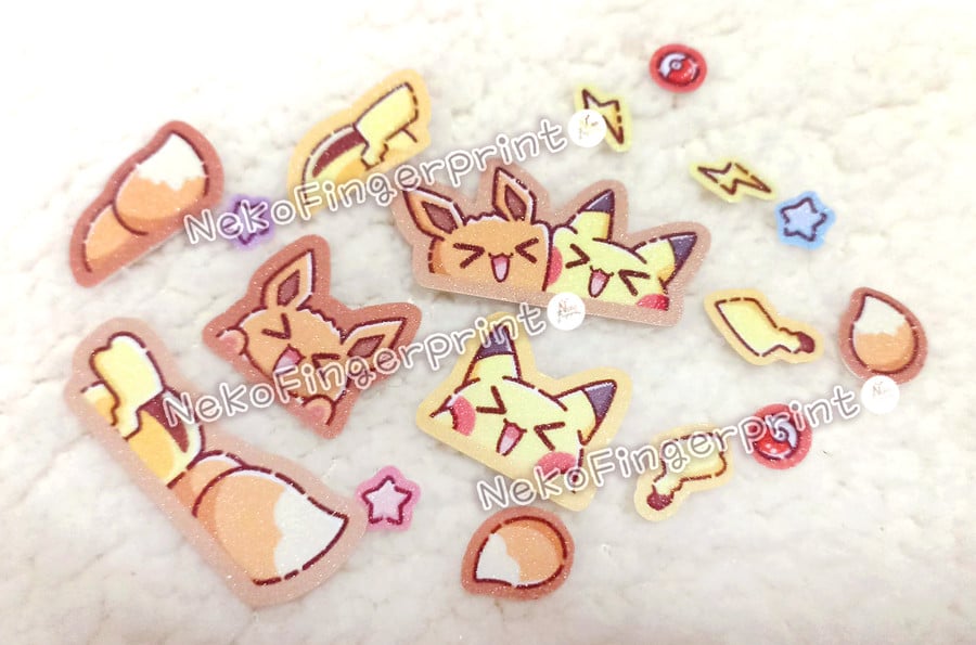 Pikachu Eevee Glitter Laminated Flake Stickers