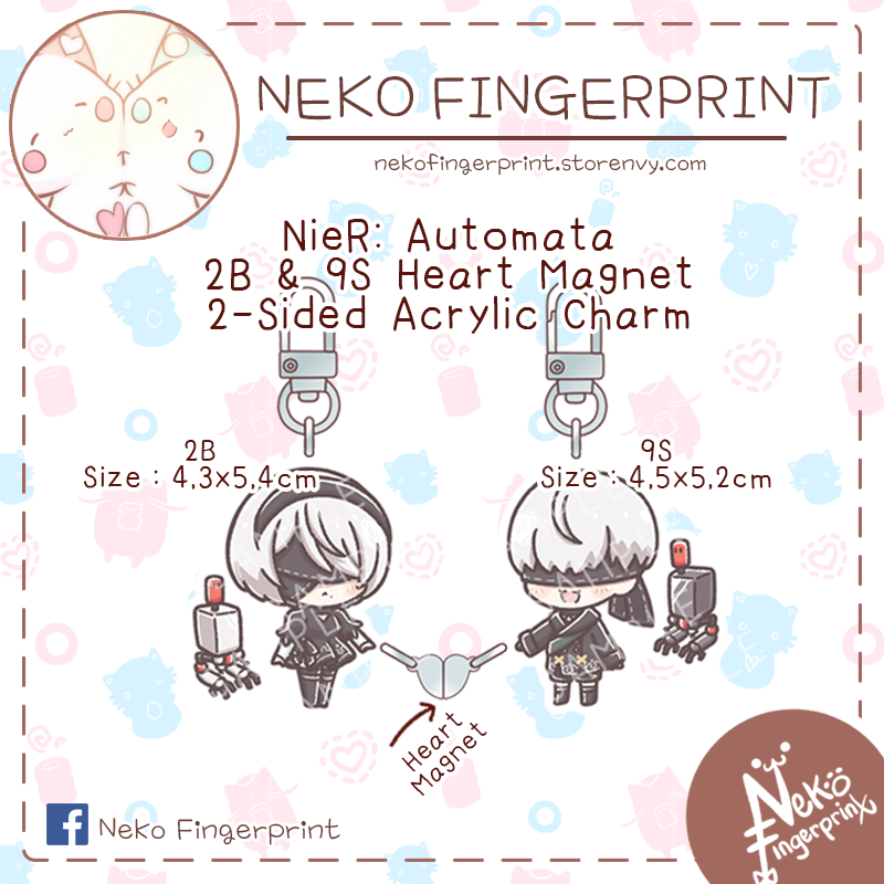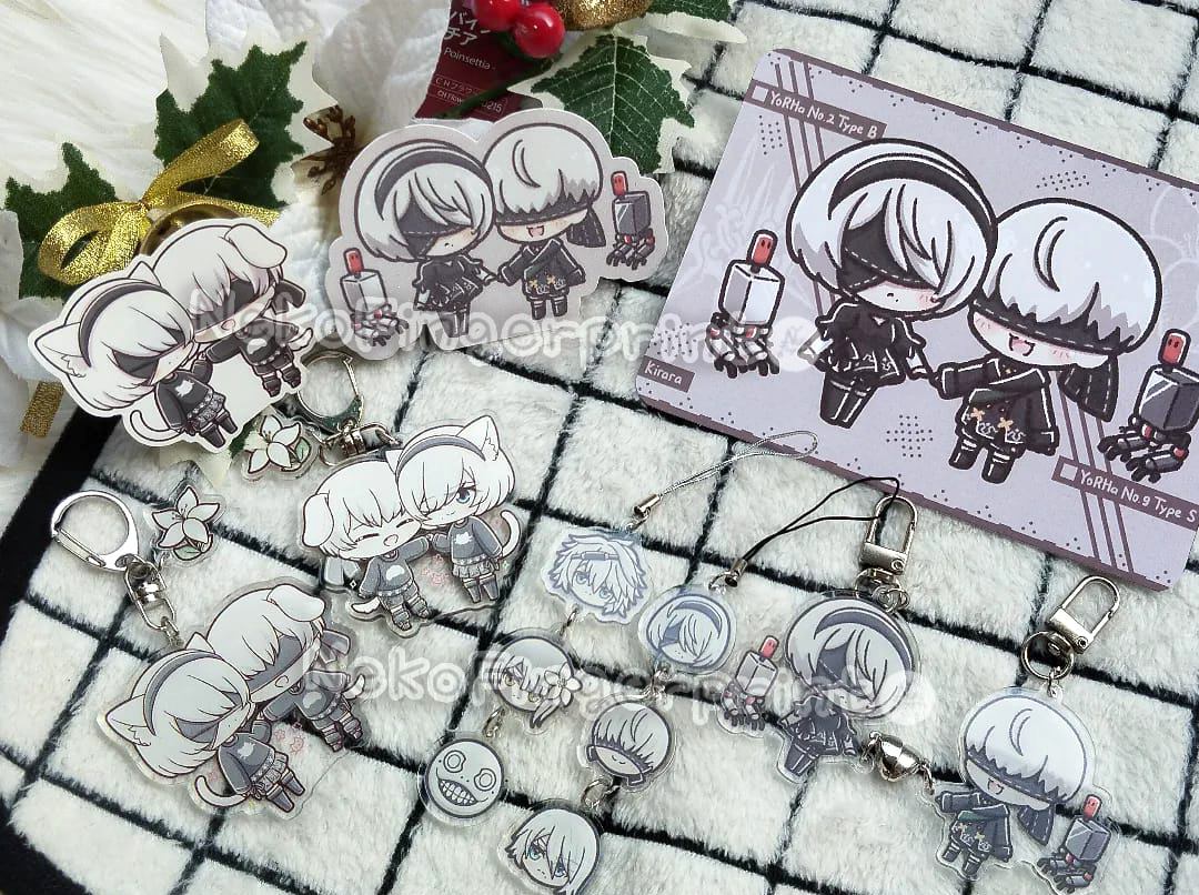 NieR: Automata - 2B & 9S Heart Magnet Acrylic Charm
